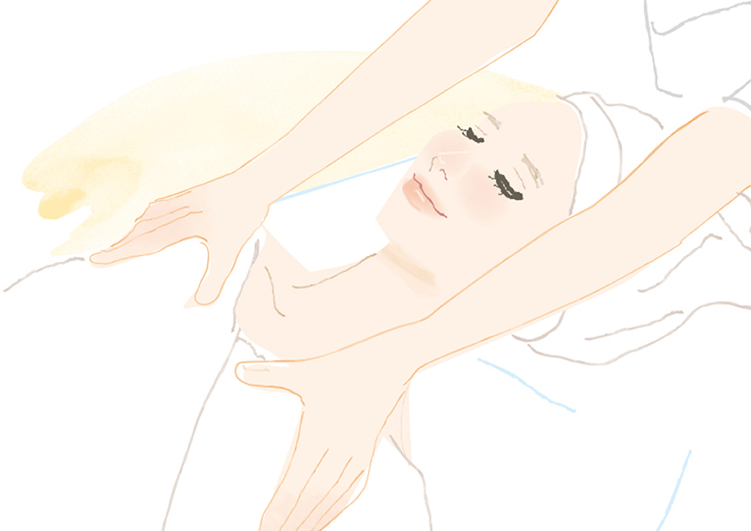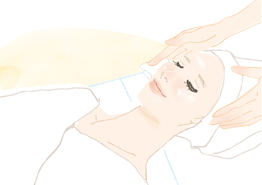 ヘッドやデコルテを心地よくプッシュ。その先のステップのために血行を良くし、心地よさへと誘います。